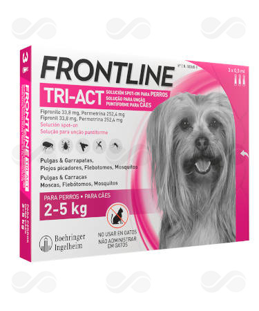 Frontline Tri-Act 33,8 mg / 252,4 mg solución spot-on para perros 2-5 kg Cada pipeta de 0,5 ml contiene:
