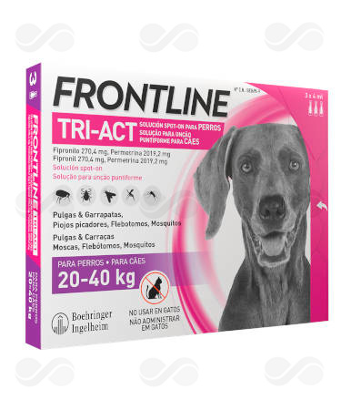 Frontline Tri-Act 270,4 mg / 2 019,2 mg solución spot-on para perros 20-40 kg. Cada pipeta de 4 ml contiene: