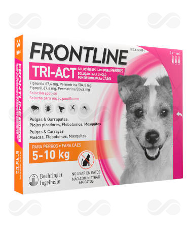 FRONTLINE TRI-ACT 3 PIPETAS está indicado para el tratamiento y prevención de infestaciones por pulgas y/o garrapatas cuando sea necesario una actividad repelente (anti-alimentación) contra flebotomos, moscas picadoras y/o mosquitos.