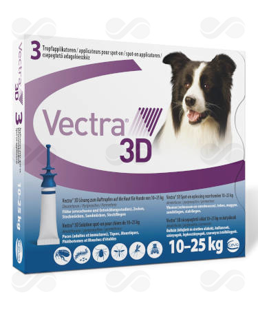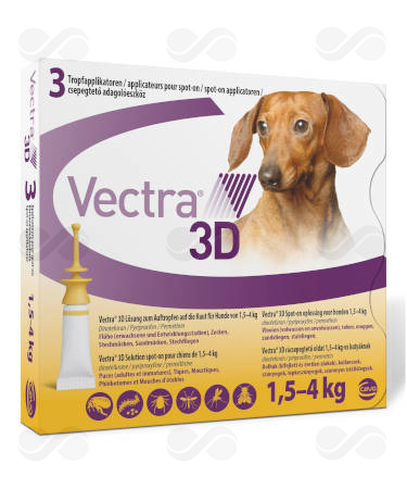 Se trata de un antiparasitario externo de acción total con un efecto repelente que actúa cuando los diferentes parásitos entran en contacto con la piel de tu mascota. La protección de cada pipeta dura todo un mes, por lo que con Vectra podrás proteger a tu perro durante 3 meses.