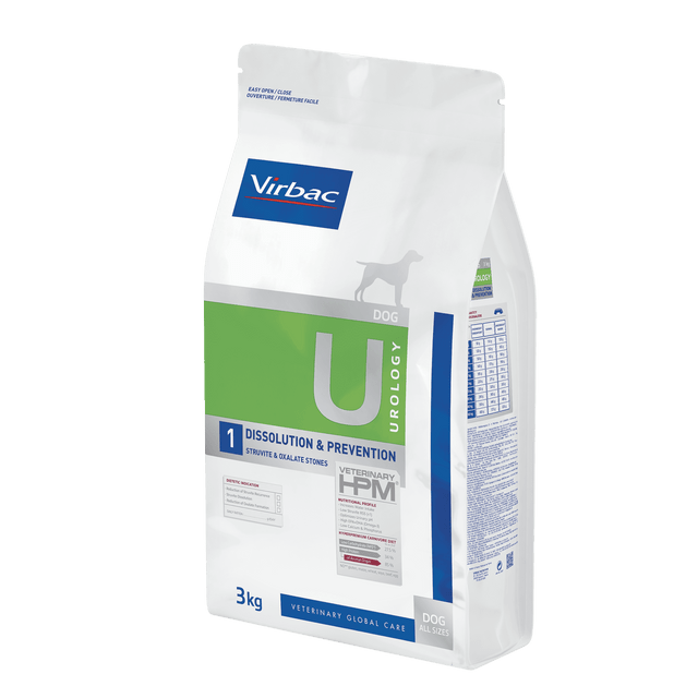Veterinary HPM U1 Dissolution & Prevention es una alimentación dietética, indicada para la disolución de cálculos de estruvita, la reducción de la reaparición de cálculos de estruvita, y la reducción de la formación de cálculos de oxalato.